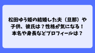 朝ドラだけでなく幅広い作品で、歌手や女優として活動している松田ゆう姫さん。松田ゆう姫さんは結婚しているのでしょうか?結婚しているのであれば旦那さんやお子さんのことが、していないのであれば彼氏のことが知りたいですね。また、松田ゆう姫さんの性格はどんな感じなのか気になりますね。そして松田ゆう姫さんの本名や身長などプロフィールについても調べてみました。