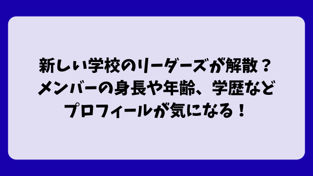そんな新しい学校のリーダーズが「解散するの?」と噂になっています。