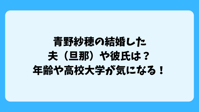 青野紗穂の結婚した夫(旦那)や彼氏は?
