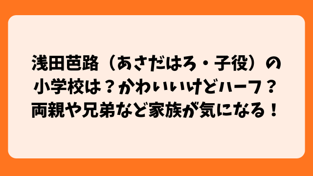今回は子役の浅田芭路ちゃんについてまとめていきます。