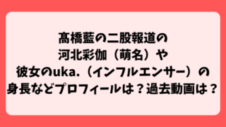 ギャル 髙橋藍の二股報道の河北彩伽(萌名)や彼女のuka.(インフルエンサー)の身長などプロフィールは?過去動画は? 2025年10月22日にバレーボール日本代表の髙橋藍選手が、セクシー女優の河北彩伽さんとホテルで密会していることが報じられました。髙橋藍選手といえば、インフルエンサーのuka.さんとの熱愛を報じられたばかり。河北彩伽さんとuka.さんの身長... 2025.10.22 ギャルスポーツティックトッカー・ユーチューバー俳優時事ネタ
