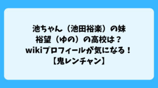 鬼レンチャンの準レギュラーともいえるポジションを獲得している池ちゃんこと池田裕楽さん。2025年11月2日の放送で、池ちゃんには妹がいることが分かりました。お名前はゆのさん。ゆのさんはどこの高校に通っているのでしょうか?また、ゆのさんのwi...