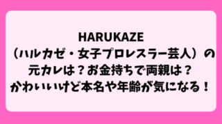 さんま御殿 HARUKAZE(ハルカゼ・女子プロレスラー芸人)の元カレは?お金持ちで両親は?かわいいけど本名や年齢が気になる! ※この記事は広告を含みます。こんにちは。娘軍団ママです。女子プロレスラー芸人として活動をされているHARUKAZEさん。HARUKAZE(はるかぜ)さんの元カレは一体誰なんでしょうか?また、HARUKAZEさんは素敵なマンションに住んでいる... 2025.09.29 さんま御殿バラエティ芸人