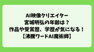 アート・芸術 AI映像クリエイター宮城明弘の年齢は?作品や受賞歴、学歴が気になる!使用AIツールは?【沸騰ワードAI魔術師】 「AI魔術師」と呼ばれ注目される映像クリエイター、宮城明弘(みやぎ あきひろ)さんが、2025年10月17日の「沸騰ワード」に出演しました。宮城明弘さんの年齢はいくつなんでしょうか?また宮城明弘さんのこれまでの作品や受賞歴についても知りたい... 2025.10.17 アート・芸術バラエティ