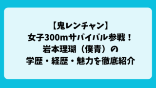 アイドル 岩本理瑚(僕青)の学歴・経歴・魅力は? ※この記事は広告を含みます。こんにちは。娘軍団ママです。SASUKE(サスケ)やKUNOICHI(クノイチ)、「鬼レンチャン 女子300mサバイバル」への挑戦などが話題となっているアイドルグループ「僕が見たかった青空(僕青)」の 岩本理瑚(... 2025.09.21 アイドルバラエティ鬼レンチャン