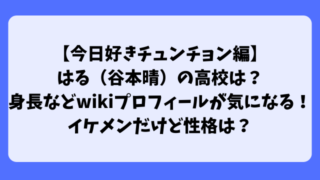 ティックトッカー・ユーチューバー 【今日好きチュンチョン編】はる(谷本晴)の高校は?身長などwikiプロフィールが気になる!イケメンだけど性格は? 2025年10月、Abemaの人気恋愛リアリティー番組「今日、好きになりました。」の最新シーズンチュンチョン編がスタートし、最初から注目の参加メンバー・はる(谷本晴)さん。はるさんの通っている高校がどこなのか知りたいですね。また、はるさんの... 2025.10.12 ティックトッカー・ユーチューバーバラエティ恋愛リアリティ