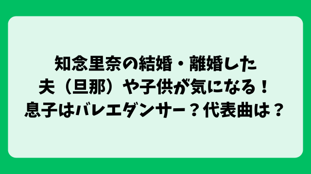 そんな知念里奈さんの「結婚・離婚した夫」「子ども」「息子のバレエ活動」など、気になるプライベートに迫ってみました!