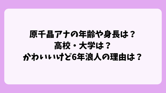 まずは、原千晶アナの基本的なプロフィールから見ていきます。