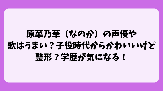 原菜乃華さんに整形疑惑がありますが、成長に伴うものであったりメイクの違いではないかと思われます。