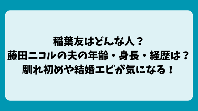 夫である俳優・稲葉友(いなば ゆう)さんに注目が集まっており、「どんな人?」「プロフィールや経歴が知りたい」「藤田ニコルさんとの馴れ初めは?」と検索する方も多いようです。