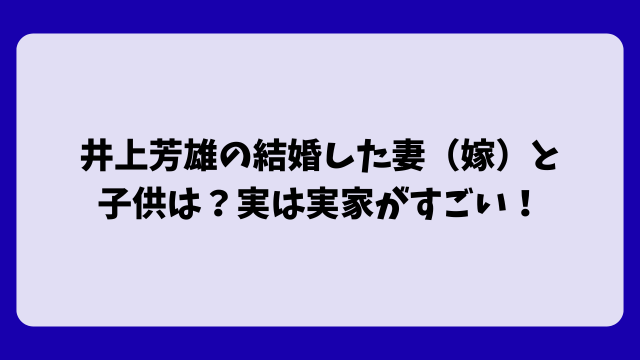 井上芳雄さんといえば、結婚されてお子さんもいらっしゃいますよね。