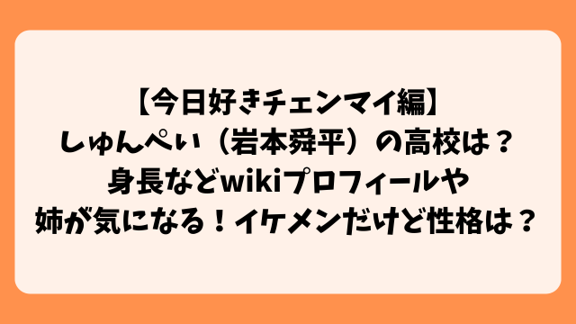 今回は、「今日、好きになりました。チェンマイ編」に出演したしゅんぺい(岩本舜平)さんについてまとめてみました。
