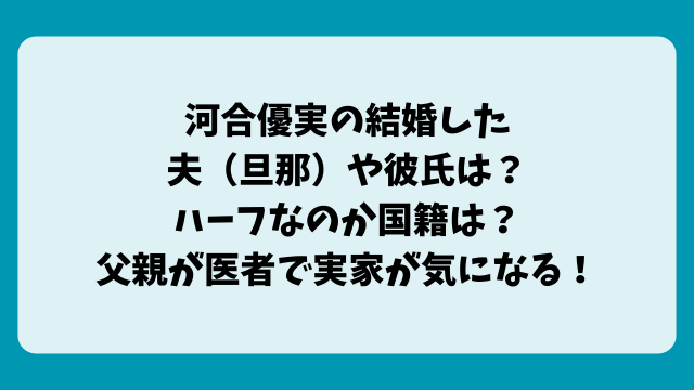 そして、河合優実さんのお父さんはお医者さんだと言われていて、ご実家のことが気になりますね。