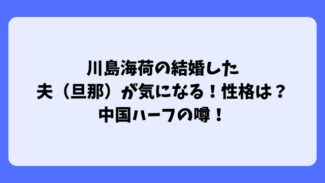 川島海荷さんの結婚した旦那さんはどんな方なんでしょうか?