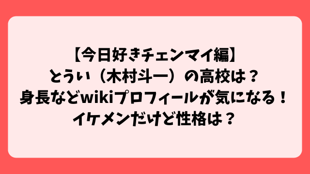 25年11月17日スタートの「今日、好きになりました。チェンマイ編」に出演する“とうい”こと木村斗一(きむら とうい)くん。