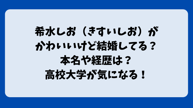 また、恐らく芸名である希水しおさんの本名が気になりますね。