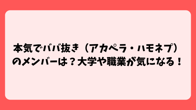 今回はアカペラグループ「本気でババ抜き」についてまとめてみました。