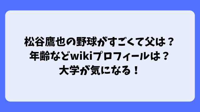今回は、松谷鷹也さんの“野球との関わり”“家族”“プロフィール”“学歴”という観点で、読者の疑問に答える形でまとめてみます。