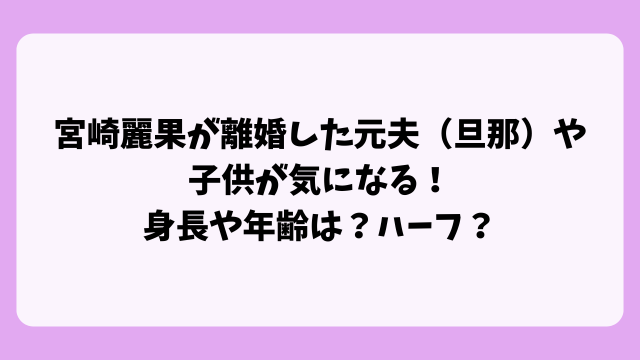 宮崎麗果さんは離婚歴があるとのことですが、元旦那さんやお子さんのことが気になりますね。
