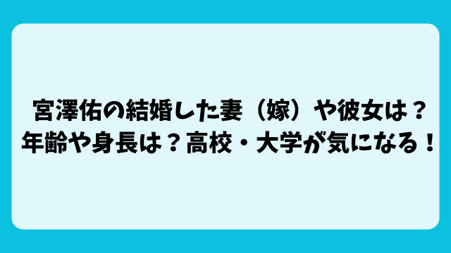 宮澤佑さんは、2025年12月現在 結婚した妻(嫁)や公に認められた彼女の情報は確認できません。