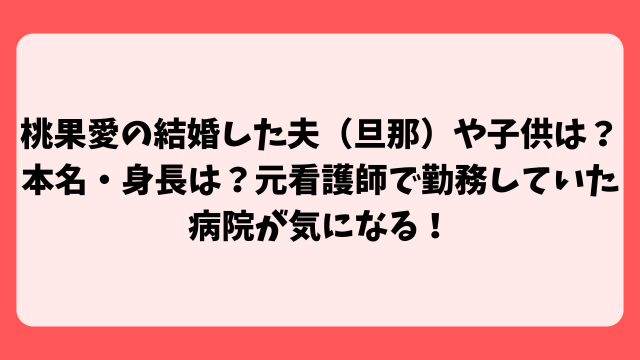 桃果愛さんは以前看護師として働いていて、東京の病院であることは判明していますが、どこの病院かまではわかりませんでした。