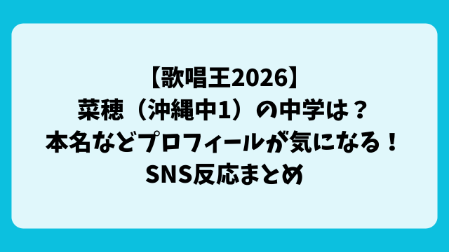 歌うま中学生として話題の沖縄の中学1年生・菜穂さんが、2026年1月10日の「歌唱王」に。