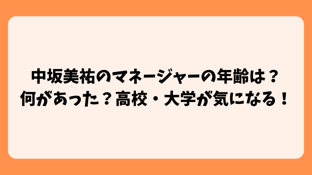 どうやら中坂美祐さんと担当マネージャーさんの間に何かあったようですが、マネージャーさんは誰なのか、また年齢などが知りたいですね。