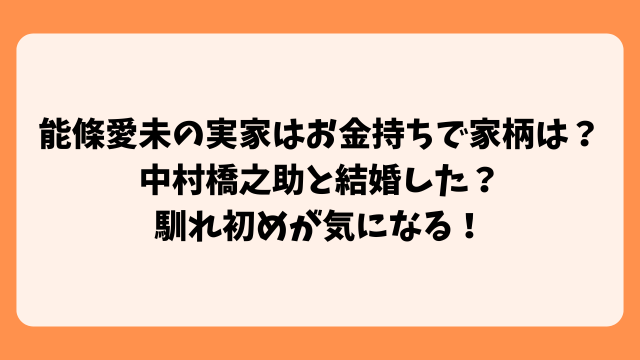次に、能條愛未さんと中村橋之助さんの結婚についてです。