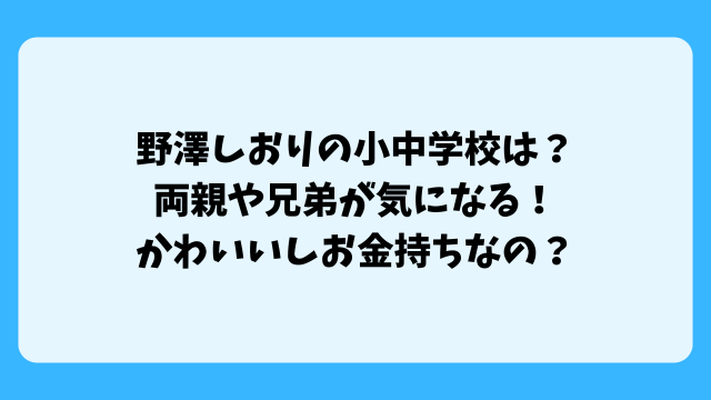 野澤しおりちゃんの通っている中学校や出身小学校はどこなんでしょうか?