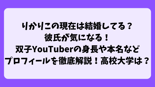 また、双子YouTuberであるりかりこさんの身長や本名などプロフィールについても徹底解説します。