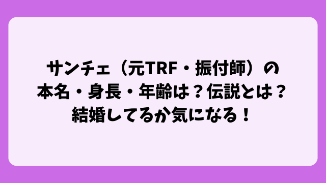今回は、そんなサンチェ先生についてプロフィールや伝説エピソード、結婚しているのかどうかまでまとめてみました。