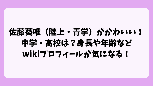 青山学院大学陸上競技部に所属し、競技力とルックスの両方で注目されている佐藤葵唯(さとう あおい)さん。