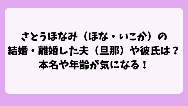 さとうほなみ(ほな・いこか)の結婚・離婚した夫(旦那)や彼氏は?