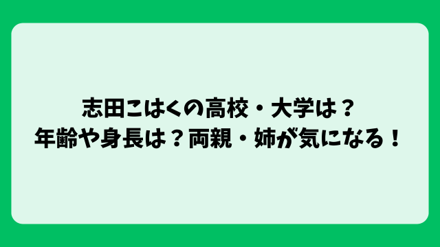 また、志田こはくさんの年齢や身長についても知りたいです。