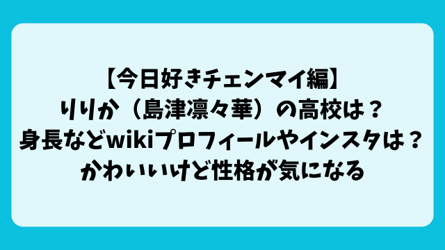 今回は今日好きチェンマイ編に出演したりりか(島津凛々華)さんについてまとめてみました。
