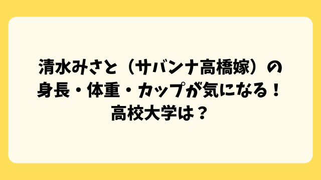 また、元グラビアアイドルの経歴を持つ清水みさとさんの、身長・体重・カップも気になります。