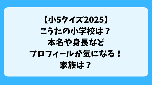 今回は「あなたは小学5年生より賢いの」の2025年度助っ人小学生こうたくんについてまとめていきます。