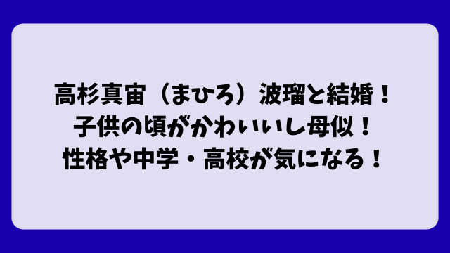 高杉真宙さんの中学校は福岡市立老司中学校から、2年生の時に東京の日出中学校に転校し、高校は日出高校を卒業しています。