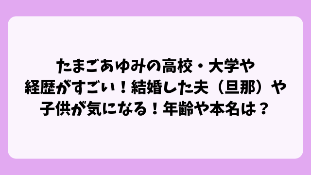 また、たまごあゆみさんは結婚されているのか、結婚しているのであれば旦那さんやお子さんのことが気になります。