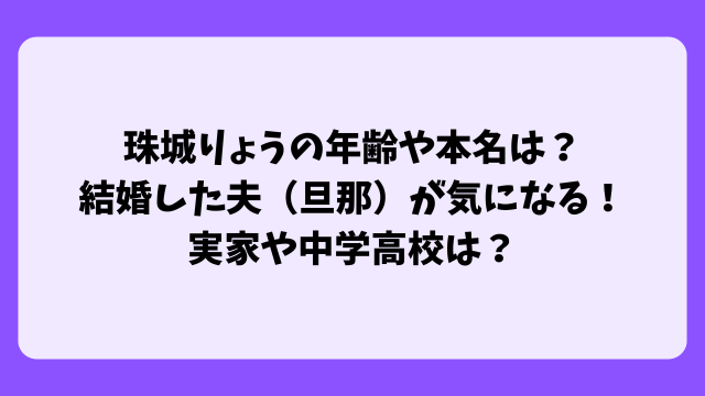2025年12月現在、珠城りょうさんは結婚しておらず、夫(旦那)はいません。