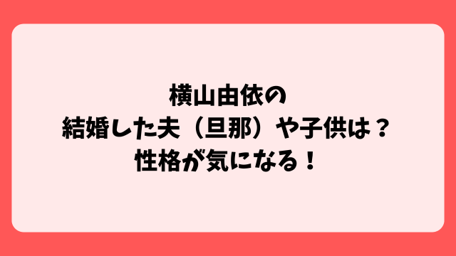 横山由依さんの結婚した旦那さんやお子さんのことが知りたいですね。